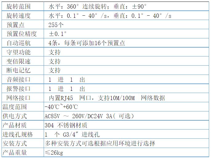 12.255個預置位、斷電記憶、自動巡航等功能。