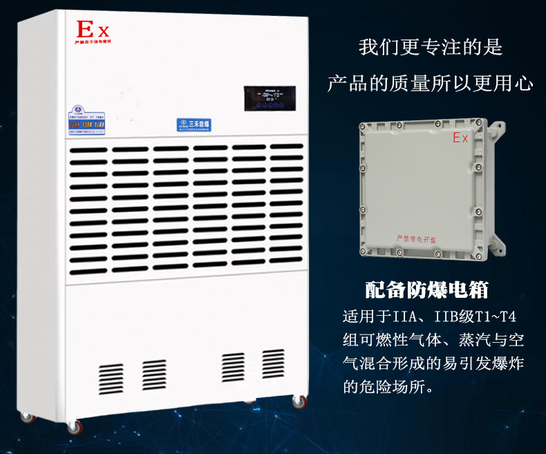 1、防爆除濕機是為存在或可能存在級別為IIA、IIB、IIC級。